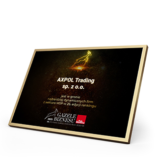 ![]() | THE BUSINESS GAZELLE 2018AXPOL Trading was honored with „The Business Gazelle 2018” award by Puls Biznesu magazine. This award is granted to selected companies with the highest growth dynamics in Poland. Thank you! |